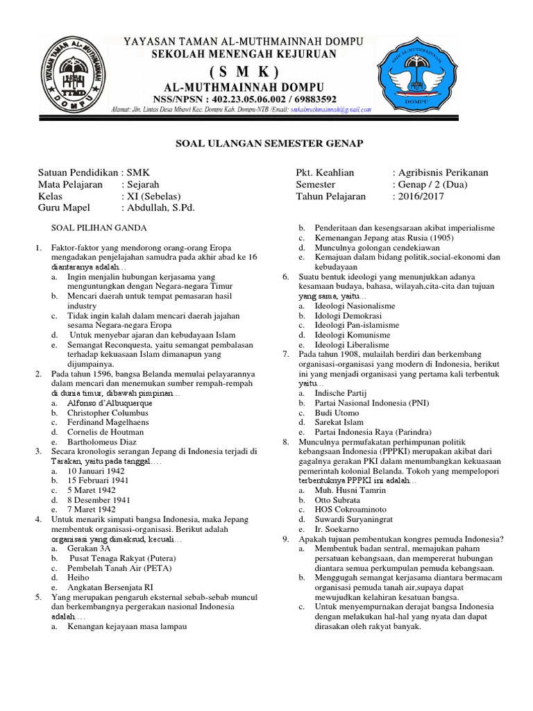 Contoh Soal Pg Pendidikan Agama Islam Pai Kelas Xi Semester 2 K13 Dan Jawaban Tekape Id