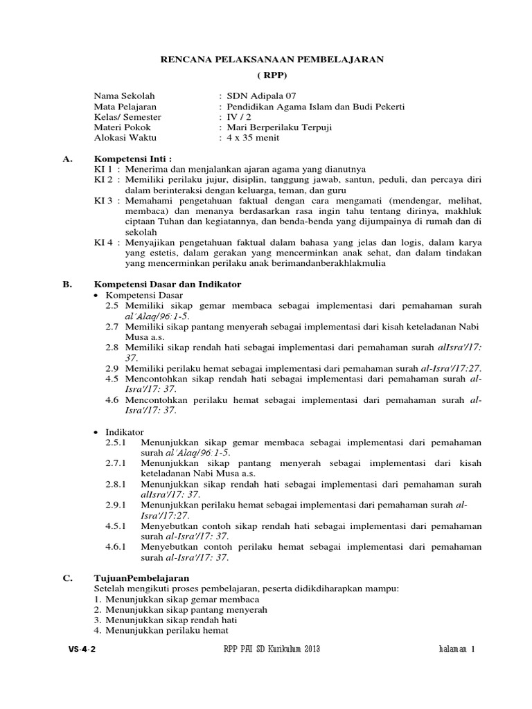 Rpp Kelas Iv Tema 8 Mari Berperilaku Terpuji