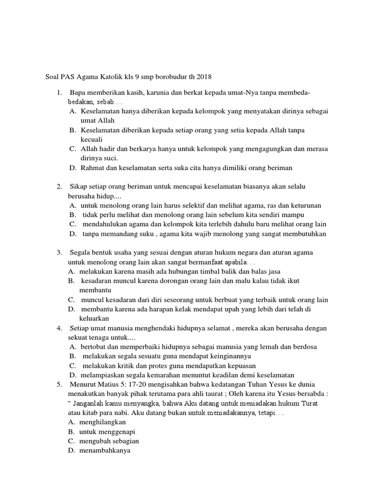 Kumpulan 40 Contoh Soal Pas Agama Katolik Smp Kurikulum 2013