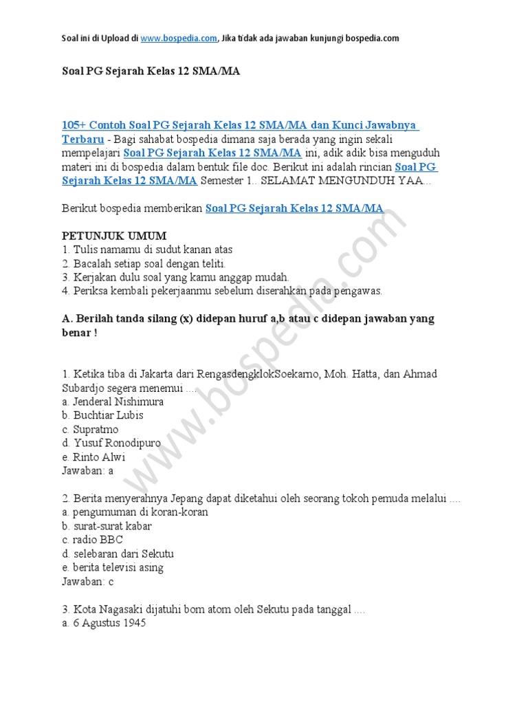 Lengkap 80 Contoh Soal Pg Sejarah Kelas 12 Sma Ma Dan Kunci Jawabnya Terbaru Bospedia