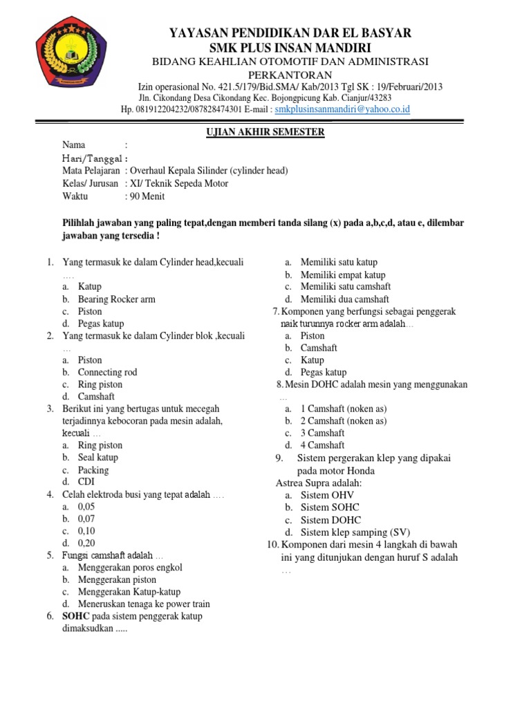 Soal Uas Tsm Kelas Xi Overhaul Kepala Silinder Ganjil