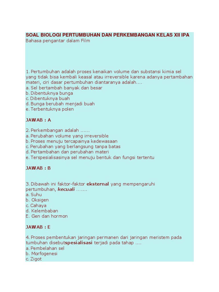 Soal Biologi Pertumbuhan Dan Perkembangan Kelas Xii Ipa Docx